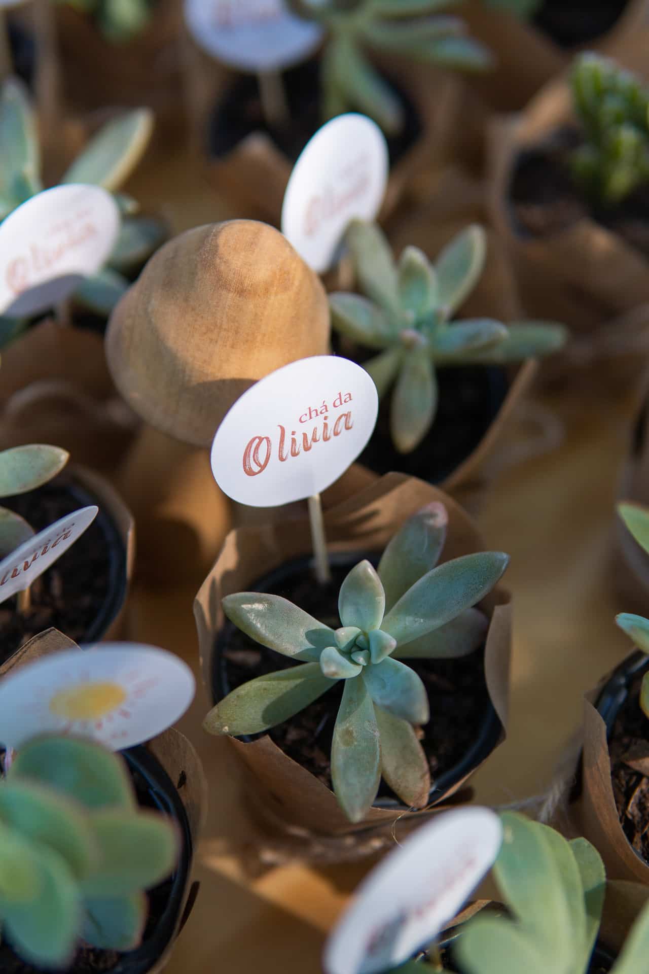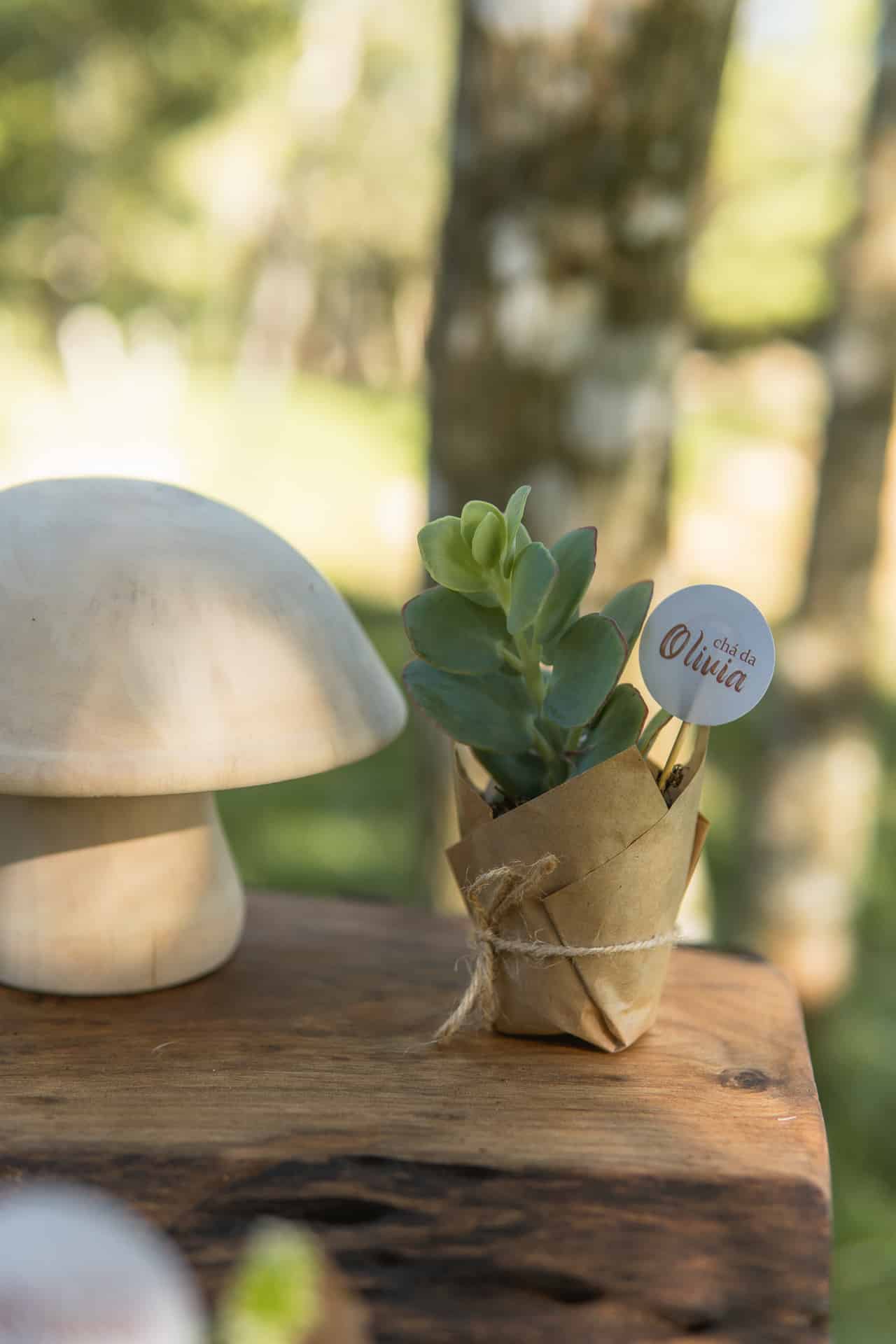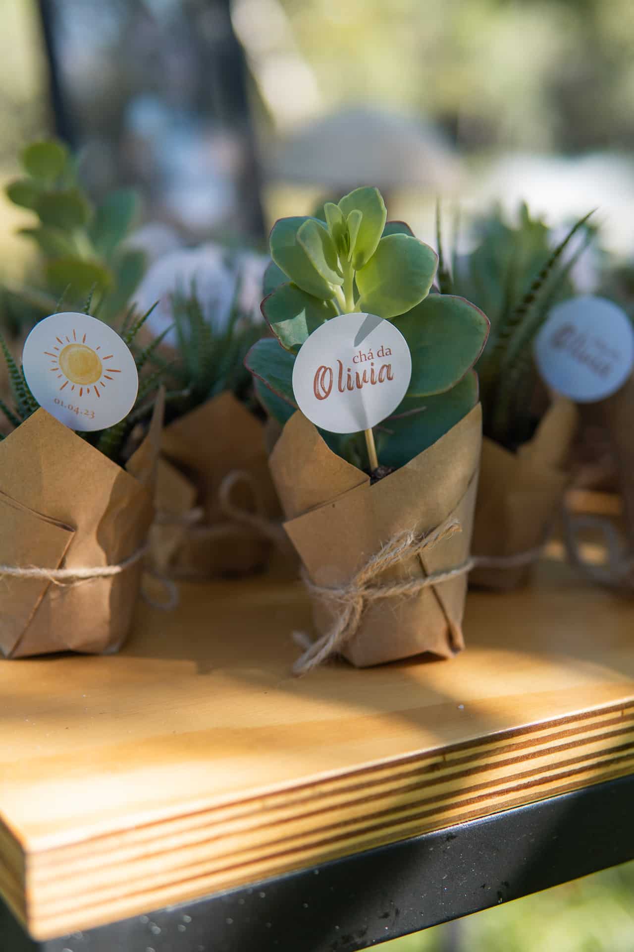 Suculenta embalada em papel pardo e laço